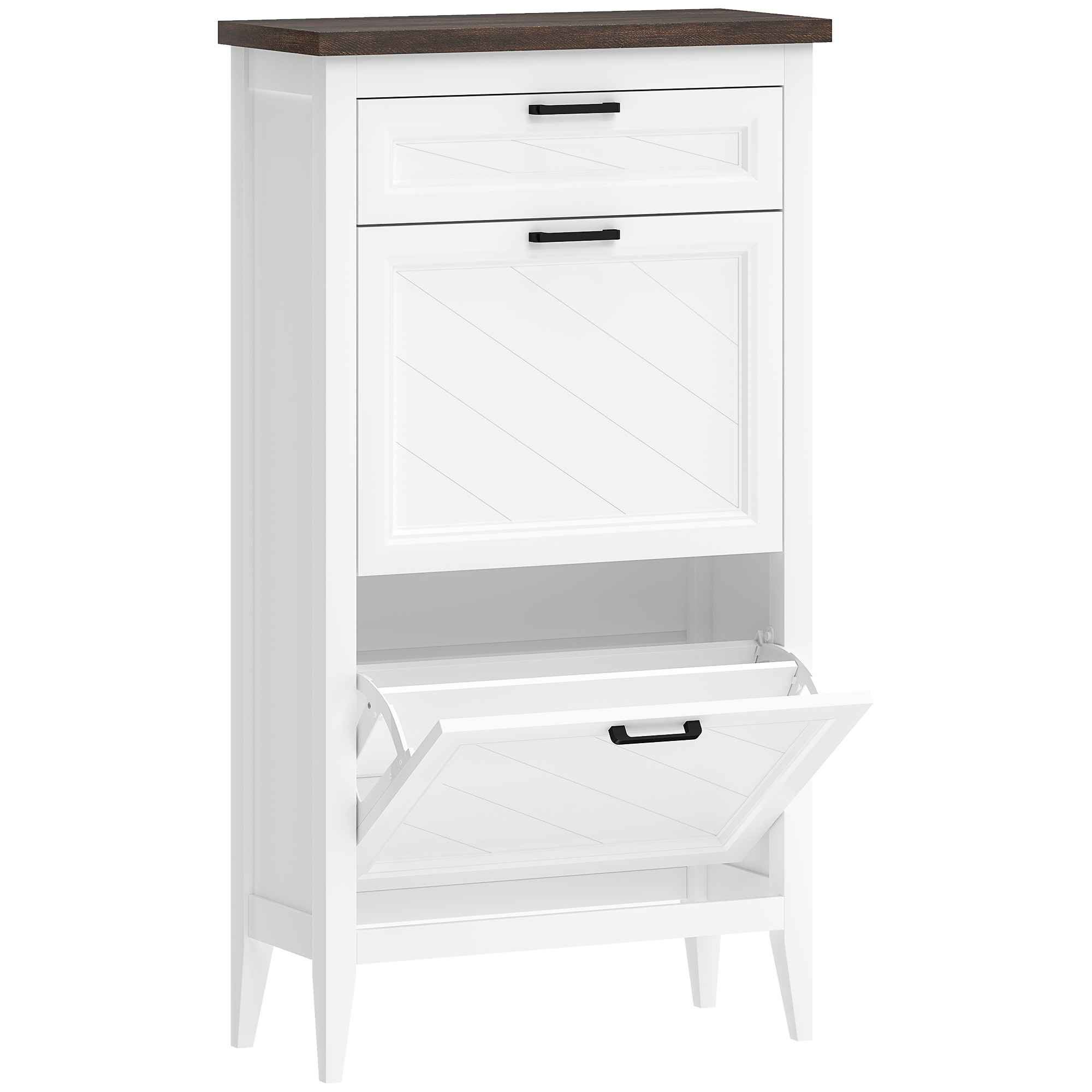 HOMCOM Shoe Cabinet with 2 Flip Drawers, Farmhouse Narrow Shoe Storage Cabinet with Adjustable Shelves, White