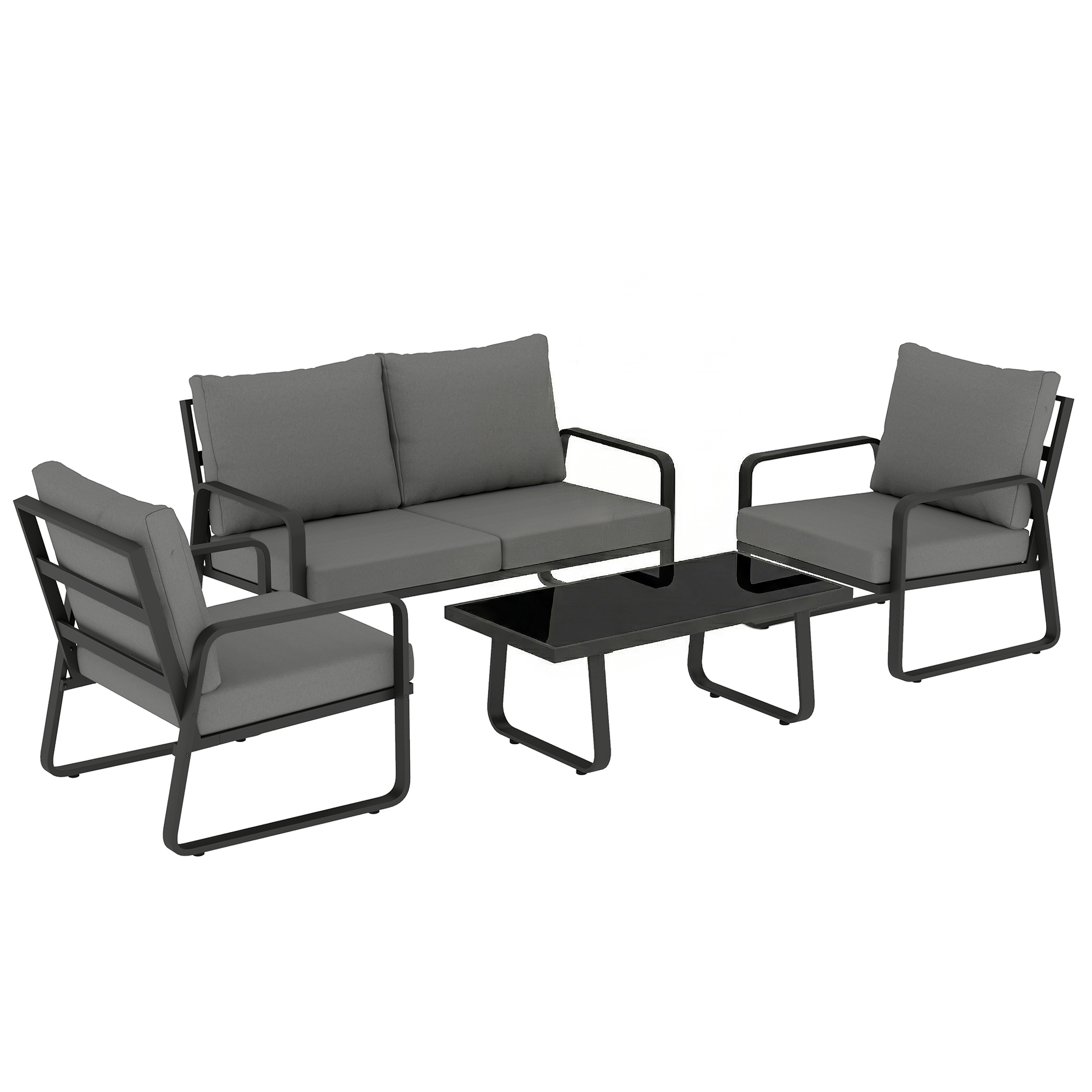 Outsunny 4 Piece Garden Furniture Set, Outdoor Sofa Set with Loveseat, 2 Armchairs, Coffee Table and Cushions