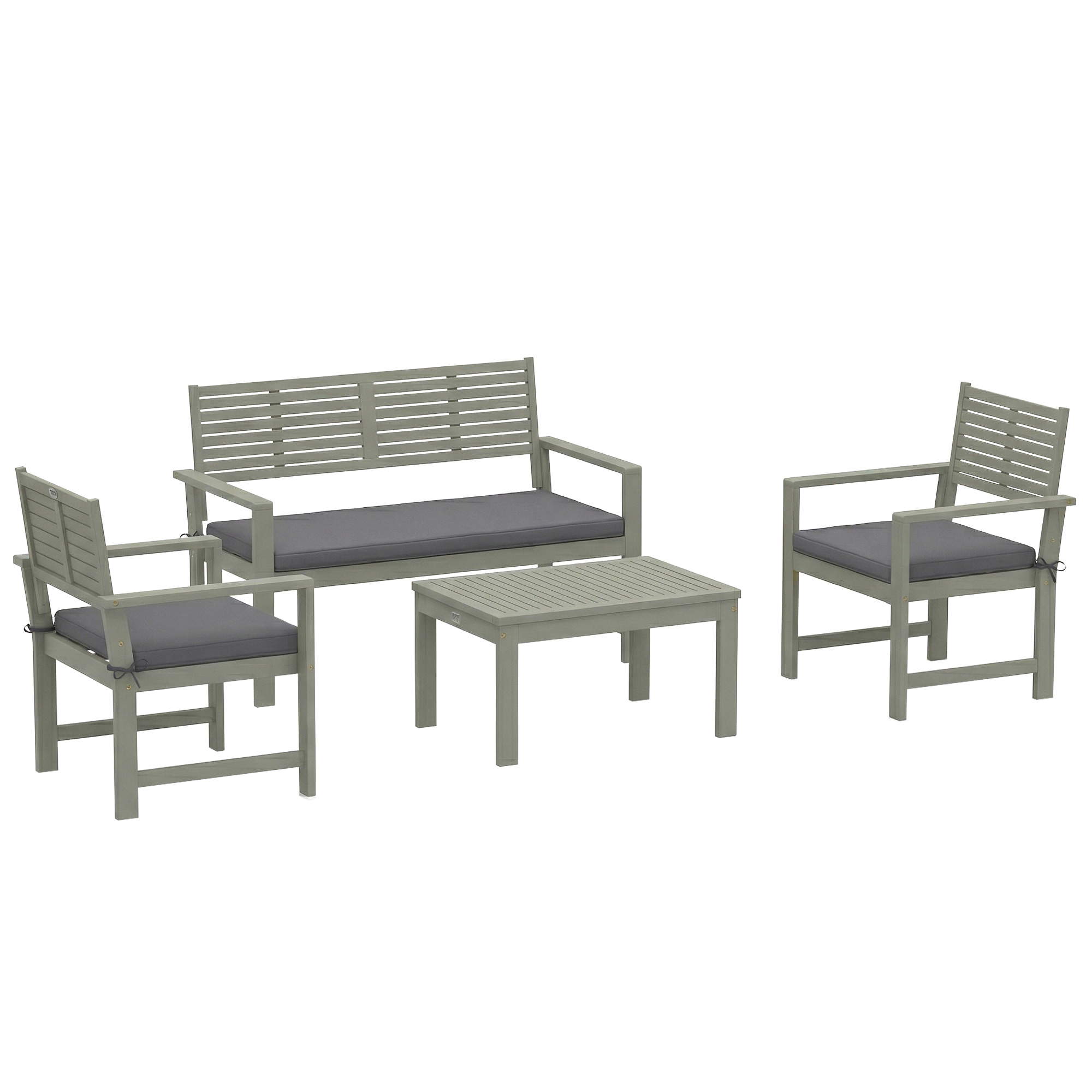 Outsunny 4 Seater Wooden Garden Furniture Set with Loveseat, Armchairs, Table, Acacia Wood Garden Sofa Set, Light Grey