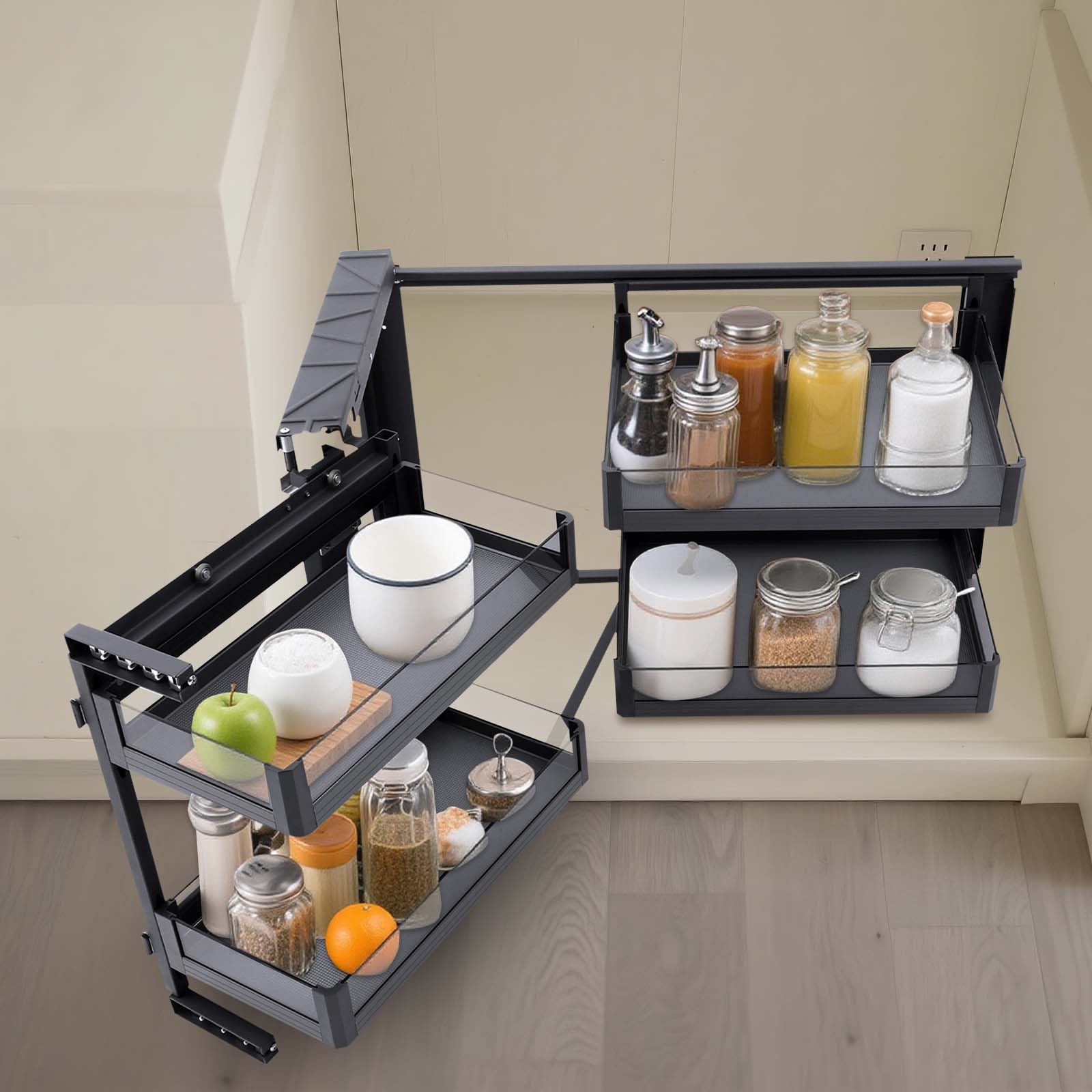 14 Hörnskåpsutdrag 2-vånings med 4 löstagbara hyllor Universell montering Höger eller Vänster Hörn Köksskåpsorganisatör svart