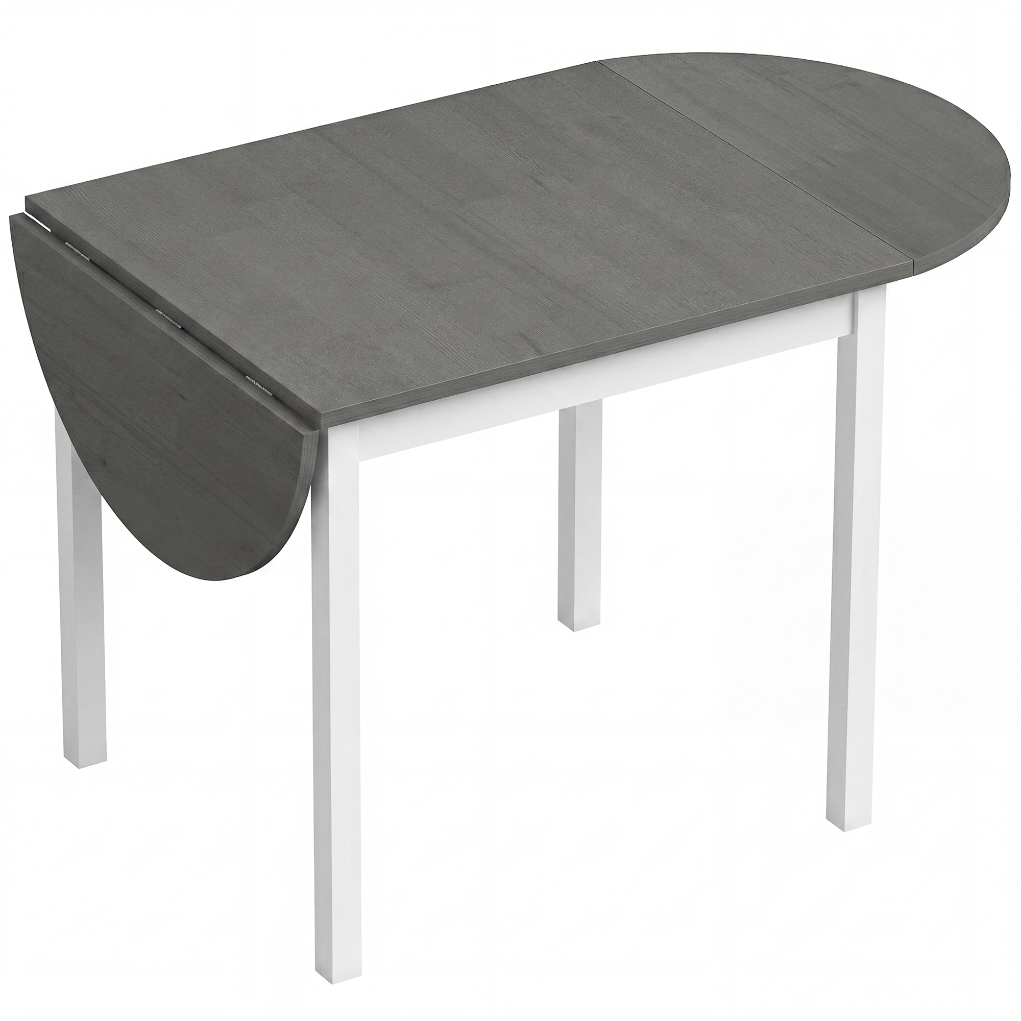 HOMCOM Folding Dining Table for 4, Round Drop Leaf Table, Modern Space Saving Small Kitchen Table with Wood Legs for Dining Room, Grey