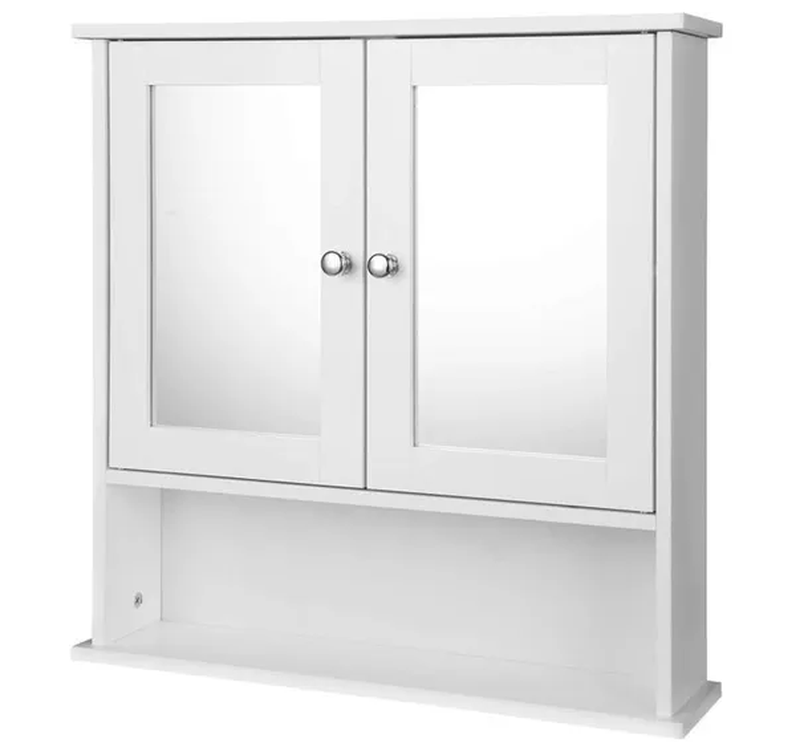 EUGAD Badezimmerspiegel-Schrank, wandmontierte Aufbewahrung mit Regalböden, Schminkschrank, 56 x 58,3 x 13 cm, weiß