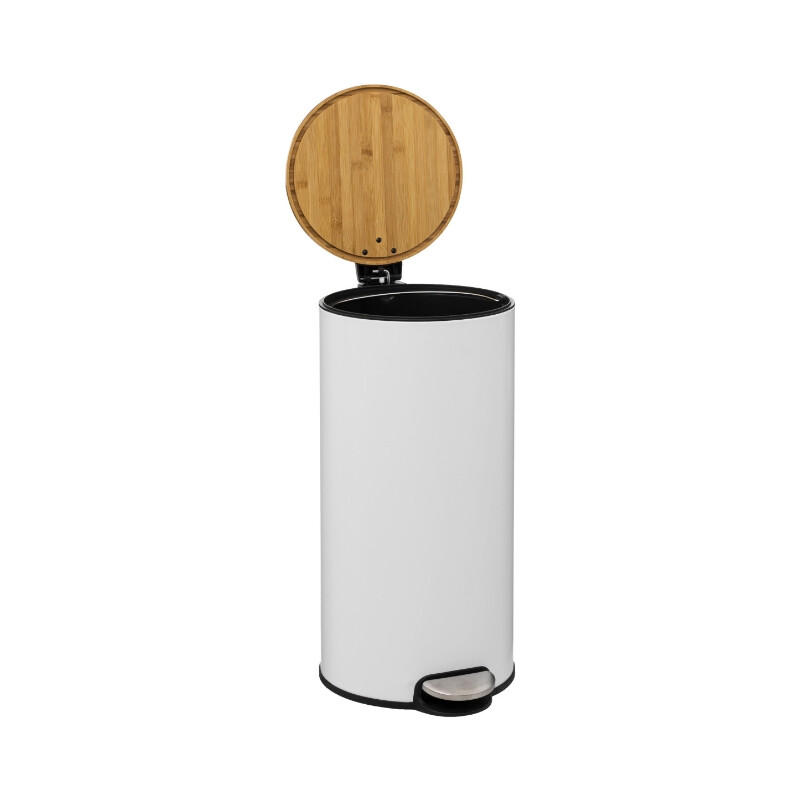 5five Modern Color Poubelle ronde avec couvercle à pédale en métal et bambou blanc - 30 L
