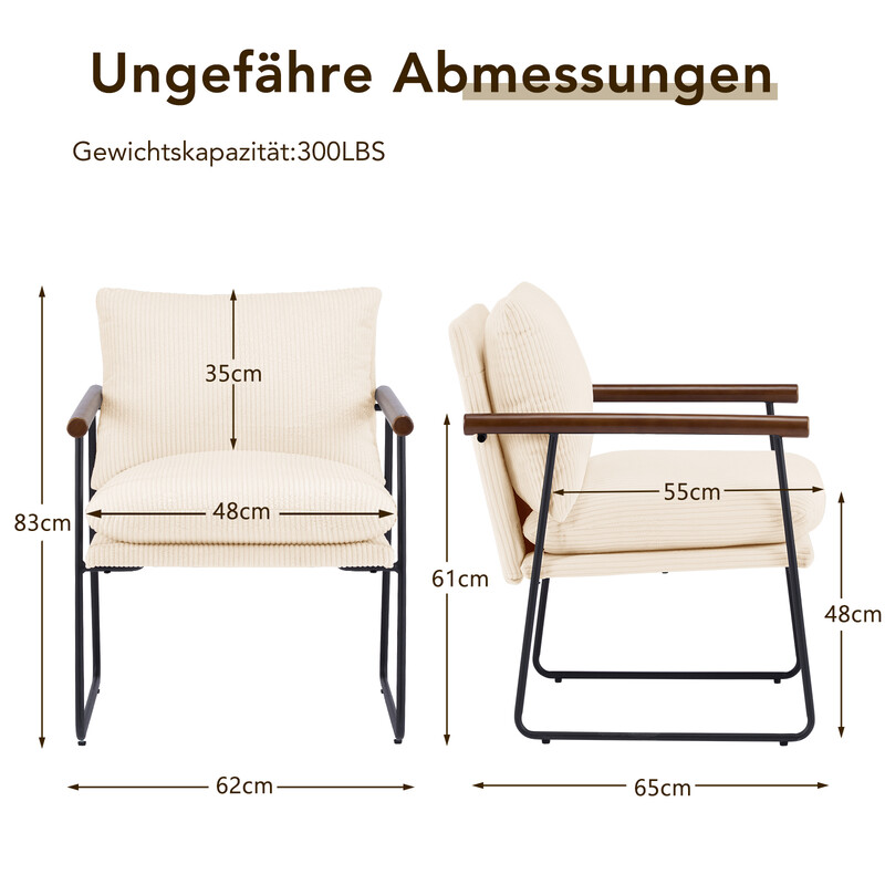 Ckaff Fauteuil Wingback XL pour Salon 65 x 62 x 83 cm, Fauteuil Relax/Lounge avec Cadre Métal, Revêtement Bouclé, Velours Côtelé, Beige - 1 pièce