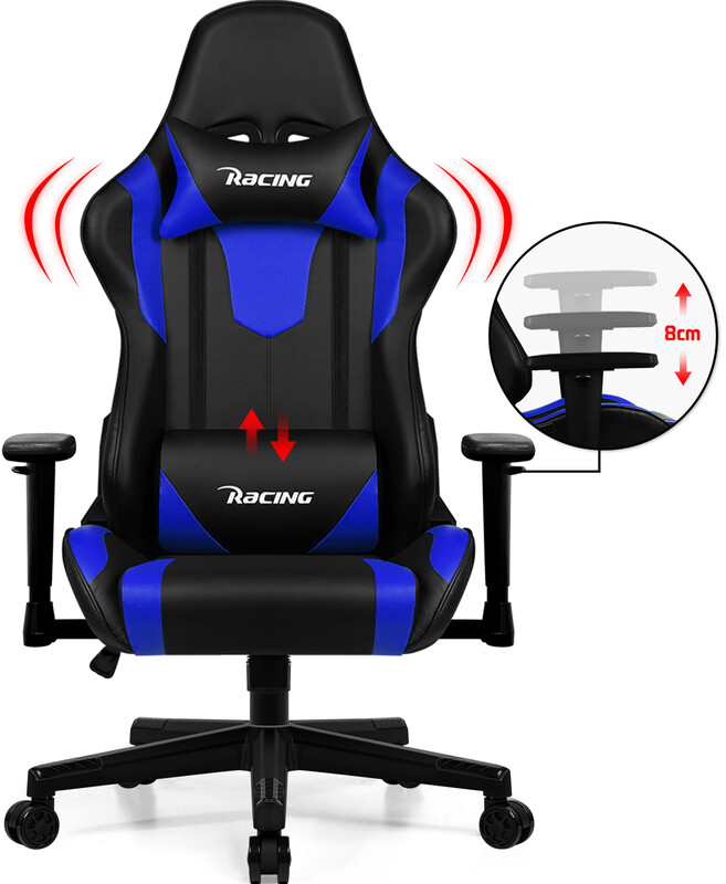 SYMINO Chaise de jeu ergonomique en cuir PU vintage avec support lombaire 3D et inclinable 90-155° - Bleu