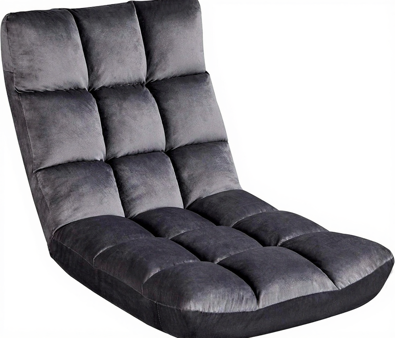 Yaheetech Faltbarer Bodenstuhl, Bequemer Sessel, Klappbarer Liegestuhl, Meditationsstuhl, Verstellbarer Rückenlehnen-Bodensitz, Lesestuhl für Zuhause oder Büro Grau