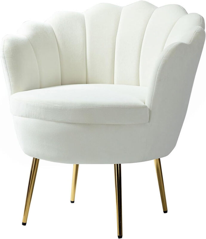 HULALA HOME Samtsessel mit dickem Rückenkissen, Moderner Loungesessel mit goldenen Beinen, Bequemer Armlehnsessel für Wohnzimmer und Schlafzimmer, Weiß