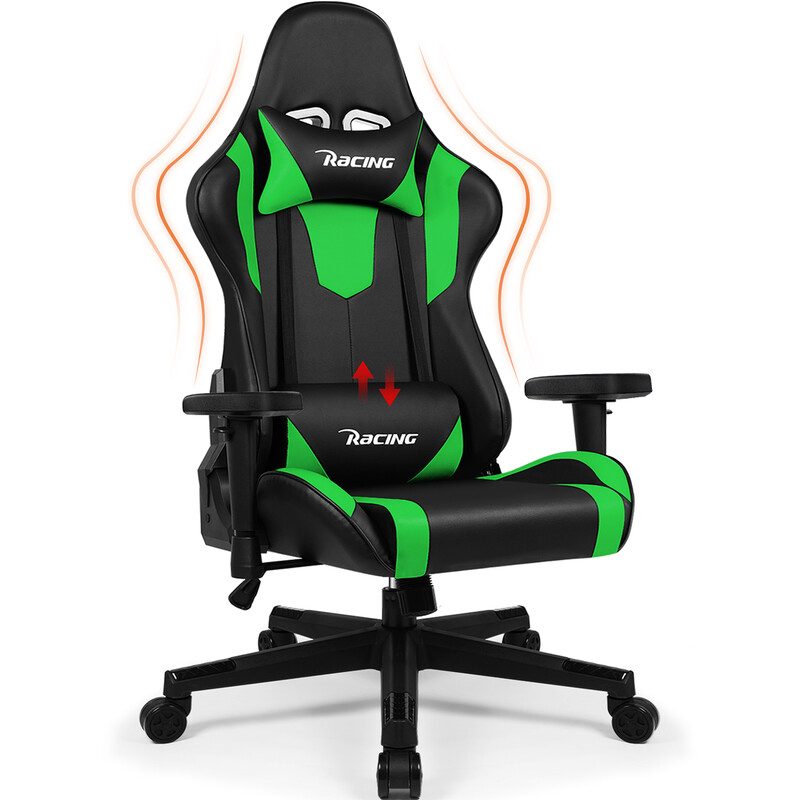 IntimaTe WM Heart Ergonomischer Gaming-Stuhl mit verstellbarer Lendenstütze, Kopfstütze und Armlehnen, mit Wippfunktion, grün, belastbar bis 150 kg