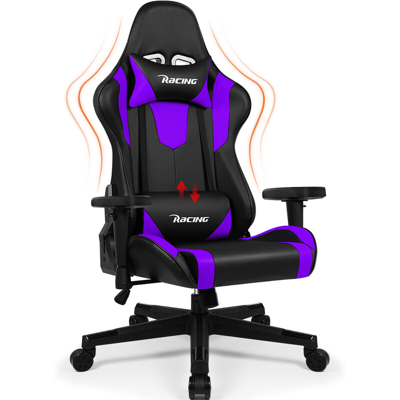 Ergonomischer Gaming-Stuhl mit verstellbarer Lendenstütze, Kopfstütze und Armlehne, für Zuhause und Büro, Rocking-Funktion, bis 150 kg belastbar, lila