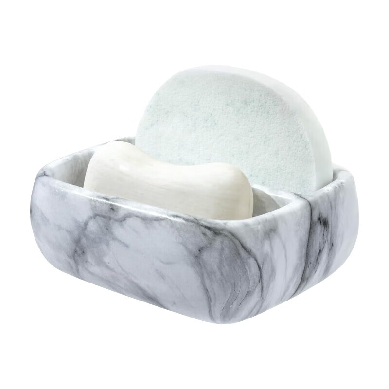 MyGift 5,4 Zoll Deluxe Moderner Weißer Marmor Muster Harz Doppel Schwammhalter, Spülbecken Arbeitsplatte Spülschwämme oder Scheuerpads Schale mit 2 Fächern