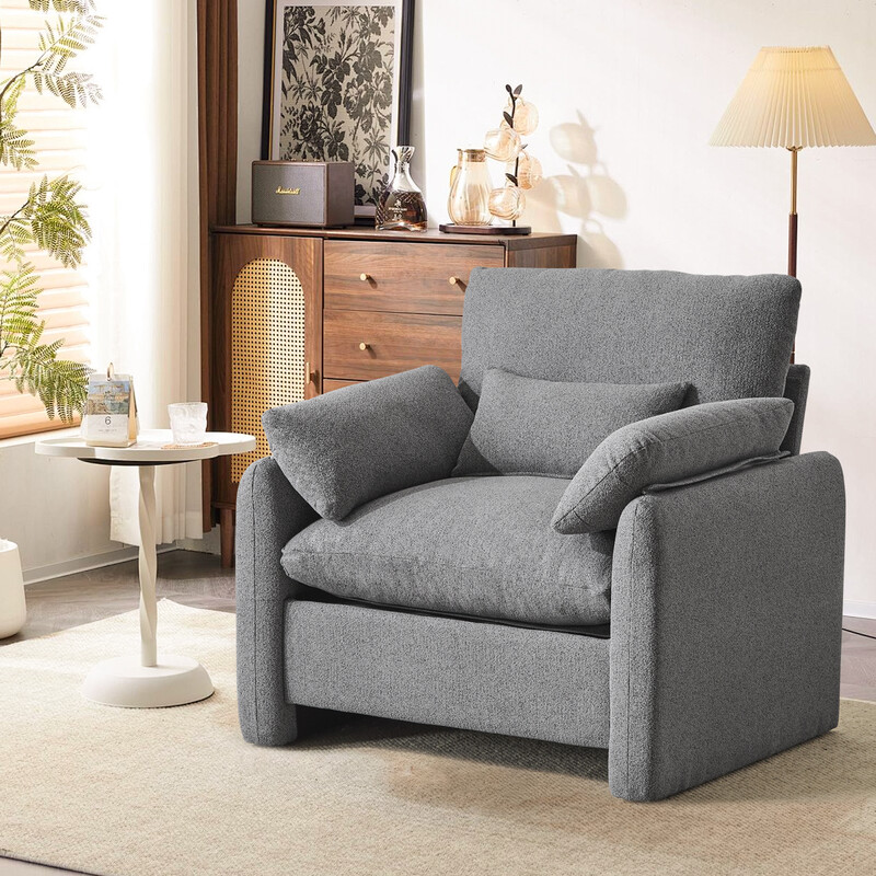 Ckaff Extragroßer Ohrensessel für Wohnzimmer, 93,5 cm Polstersessel Fernsehsessel Einzelsofa mit abnehmbarer Armlehne & Wurfkissen, Lesesessel für Wohnzimmer Schlafzimmer, Grau