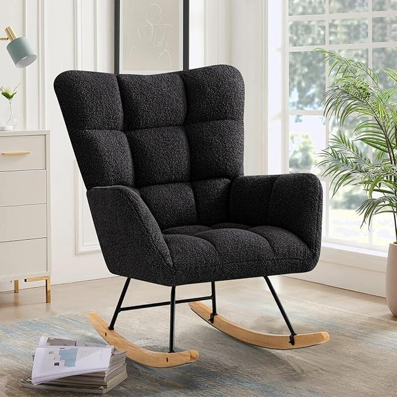 Ckaff Schaukelstuhl, Stillstuhl, Babyzimmer, Entspannungsstuhl, Polsterarmstuhl, Wohnzimmerstuhl, Lesestuhl mit Holzgleitern, Armlehnenstuhl für Wohnzimmer, Schlafzimmer, Babyzimmer, Schwarz