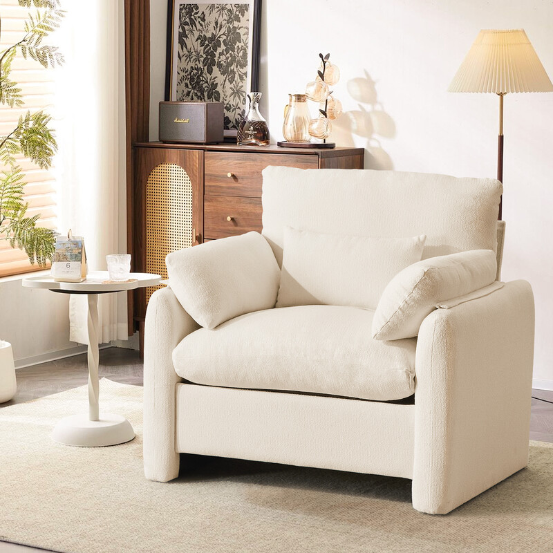 Ckaff Extragroßer Ohrensessel Wohnzimmer, 93,5 cm Polstersessel Fernsehsessel Einzelsofa mit abnehmbarer Armlehne & Wurfkissen, Lesesessel für Wohnzimmer Schlafzimmer, Beige