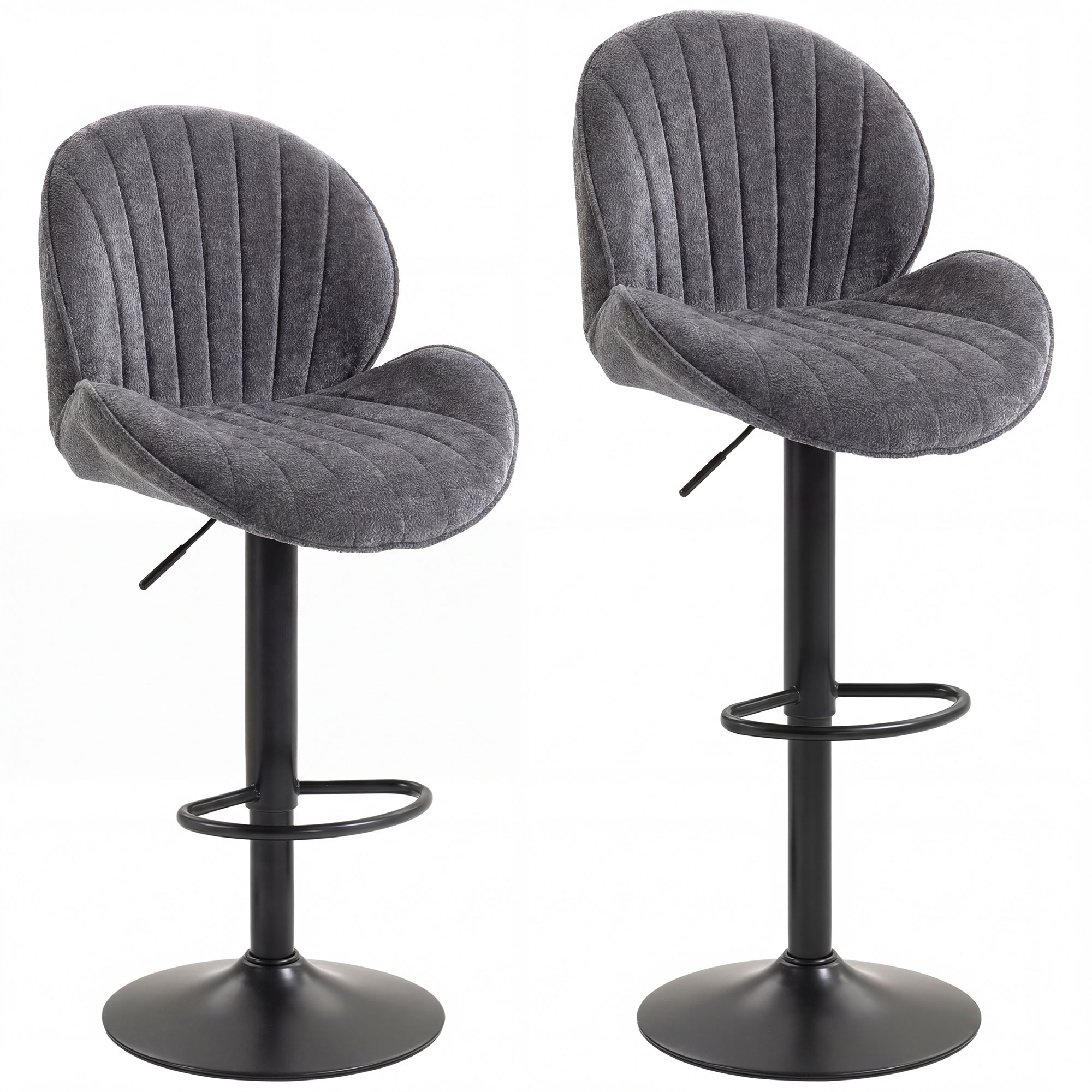 HOMCOM Bar Stools Set of 2, Swivel Barstools with Back, Adjustable Height and Footrest for Kitchen Island, Dining Room, Grey
