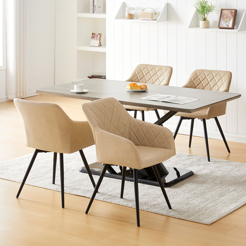 CLIPOP 360° Swivel Dining Chairs Brown Faux Leather Upholstered Kitchen Chairs without Wheels Ergonomic Office Desk Chair with Arms and Metal Legs for Home Restaurants 0407-s brown 55*45*82.5 cm