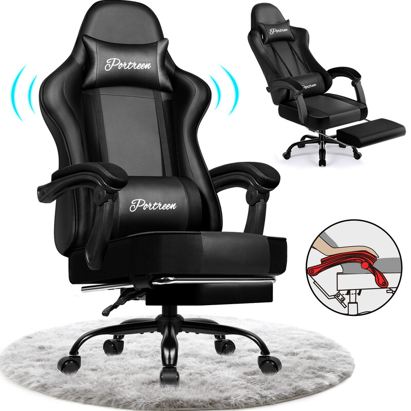 GTIMEX Gaming-Stuhl, ergonomischer Bürostuhl mit ausziehbarer Fußstütze, Gaming-Stuhl mit Kopfstütze und Lendenwirbelstütze, gepolsterter Gaming-Sessel 150 kg, höhenverstellbarer Gaming-Stuhl