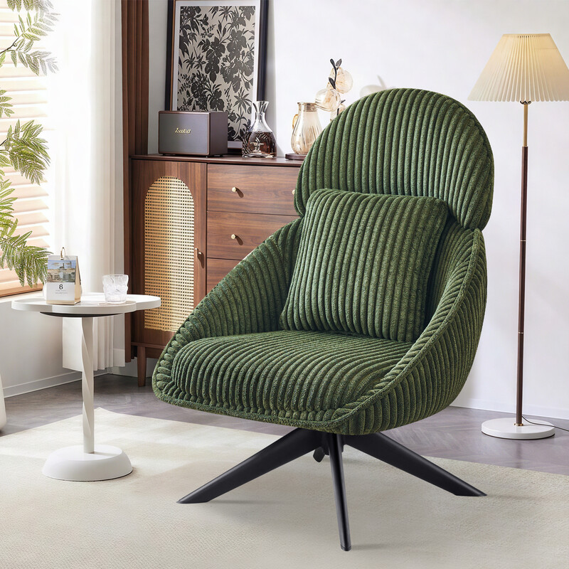 Ckaff Lounge Chair Wohnzimmerstuhl 360° drehbar, Ohrensessel Sessel gepolstert mit dickem abnehmbarem Kissen, Relaxsessel Lesesessel für Wohnzimmer Schlafzimmer Büro, Grün