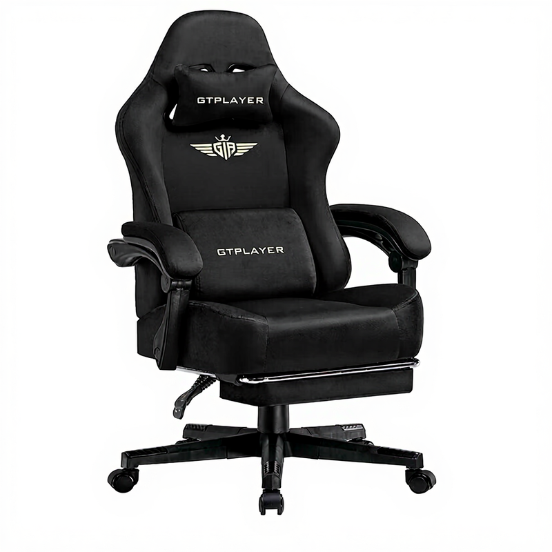 GTPLAYER Gaming-/Bürostuhl, ergonomisches Design, weiches stoffpolster, mit fußstütze, höhenverstellbarer rückenlehne, schwarz