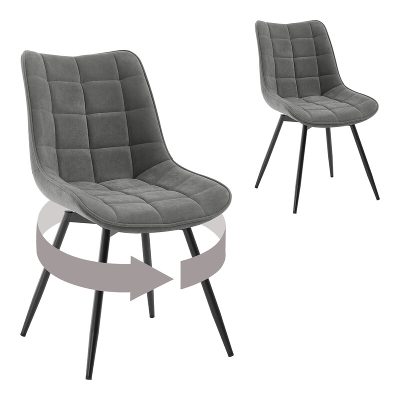 WOLTU Drehbare Esszimmerstühle 2er-Set, Küchenstuhl Polsterstuhl Wohnzimmerstuhl Sessel mit Rückenlehne, Samtsitz, Metallbeine, Dunkelgrau, EZS86dgr-2
