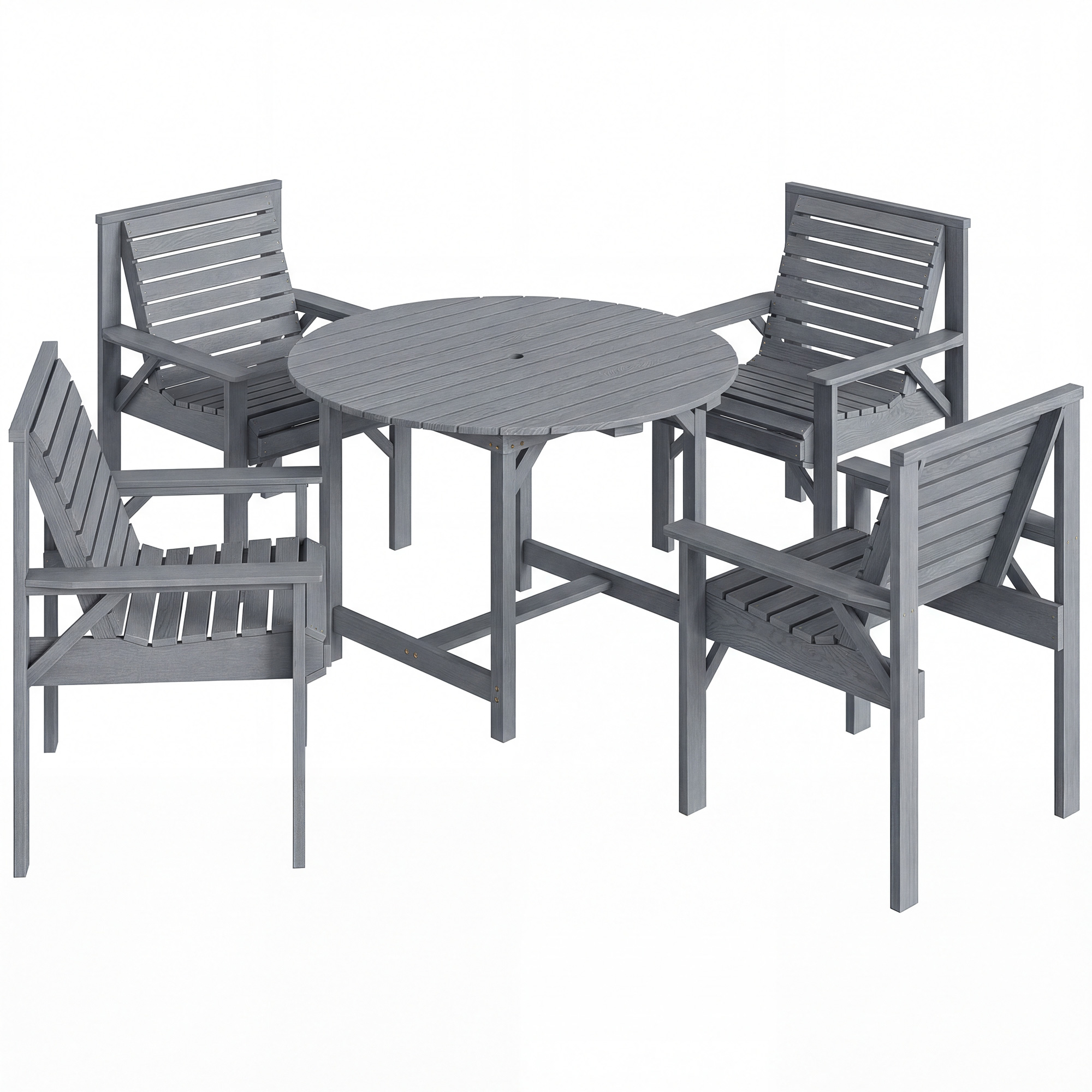 Outsunny 5 Pieces Garden Dining Set with Parasol Hole, Round Outdoor Table and Chairs, 4 Seater Wooden Garden Furniture, Grey