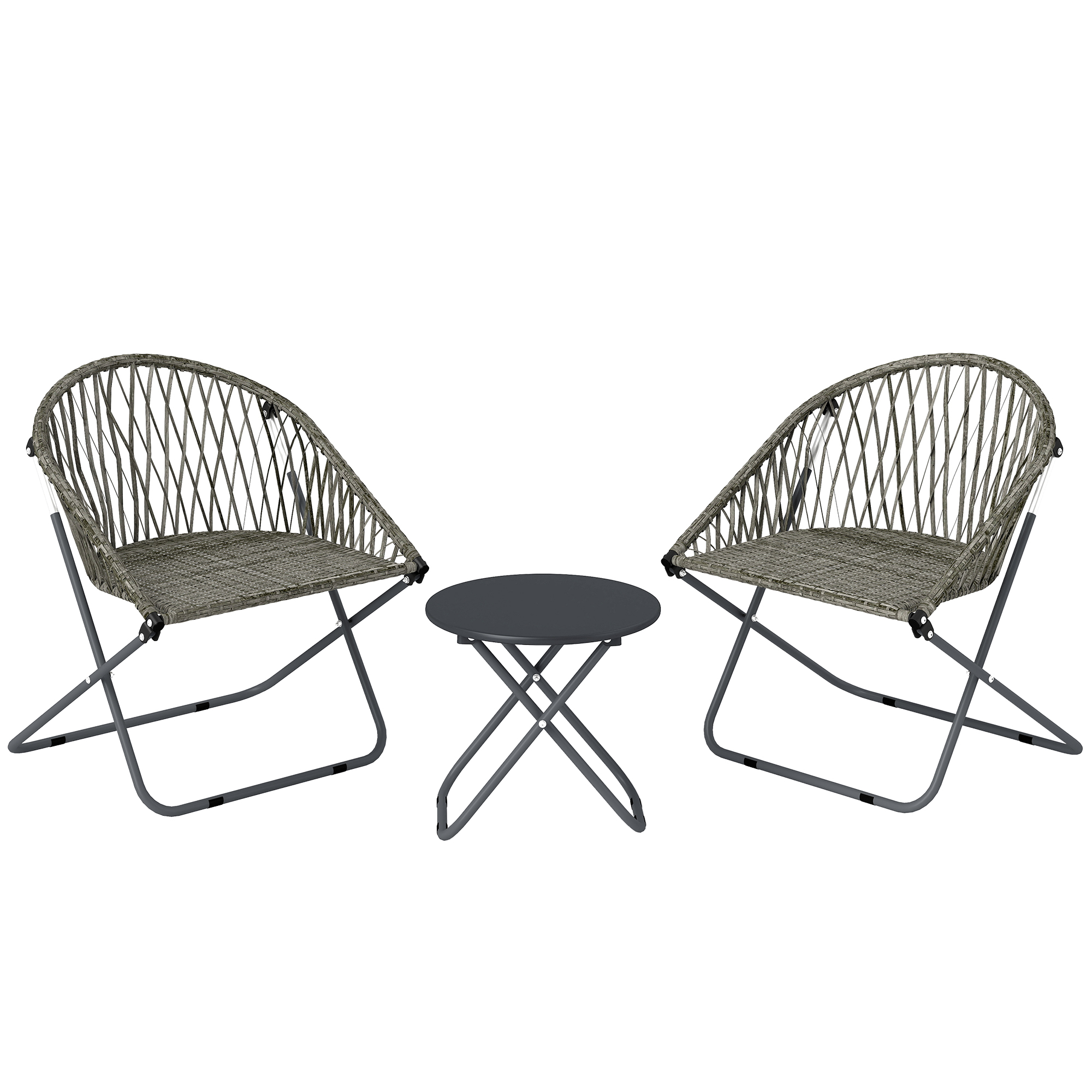 Outsunny Patio Bistro Set, Folding Patio Furniture Set with 2 Chairs and Table, Grey