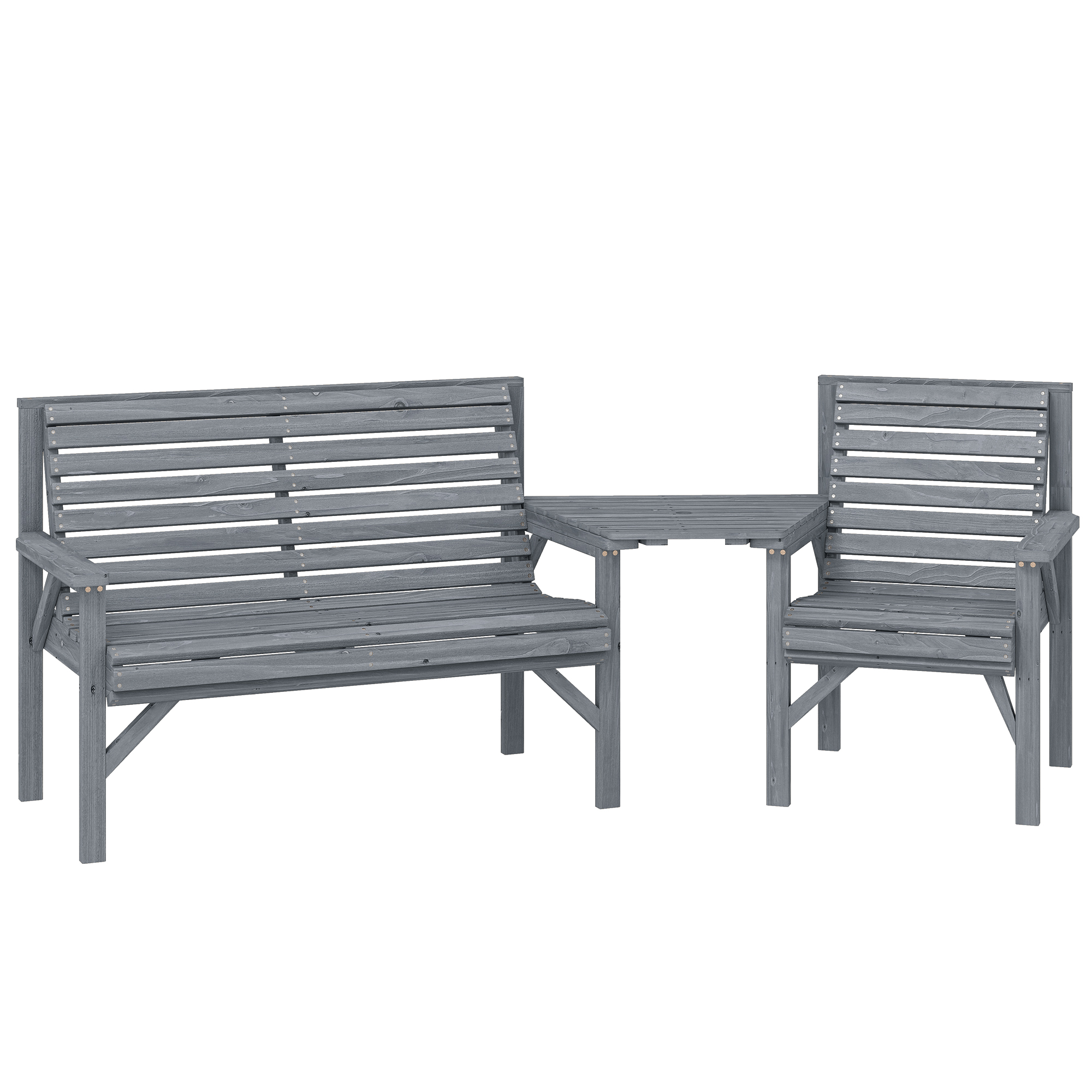 Outsunny Wooden Garden Furniture Set with Parasol Hole, 1 Chair, 1 Bench and Detachable Table, Grey Embossed Finish