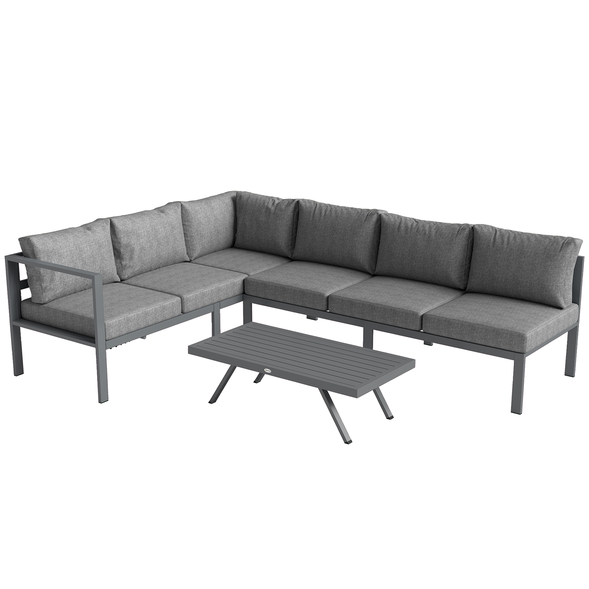 Outsunny 3 Pieces Garden Furniture Set, Aluminium Corner Lounge Set with Adjustable Backrest and Coffee Table