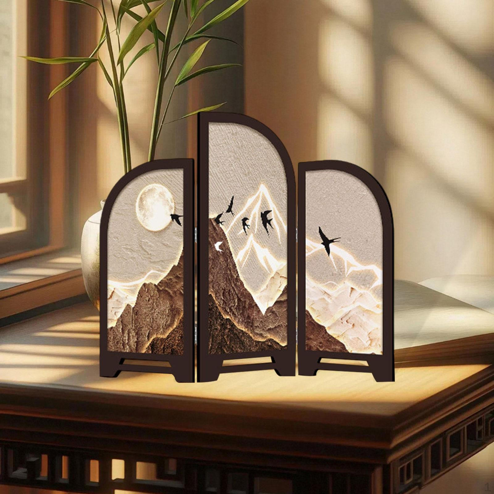Mini Vikskärm 3 Paneler Rumsavdelare Ornament Skrivbordsdekorativ för Vardagsrumsdekor
