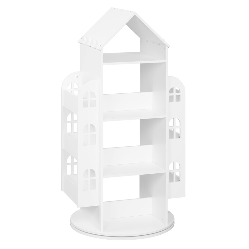 WOLTU Weißes drehbares Bücherregal für Kinder, 4-stufige Kinder-Aufbewahrungseinheit mit 2 seitlichen Ablageflächen, hausförmig, 63x59x125cm