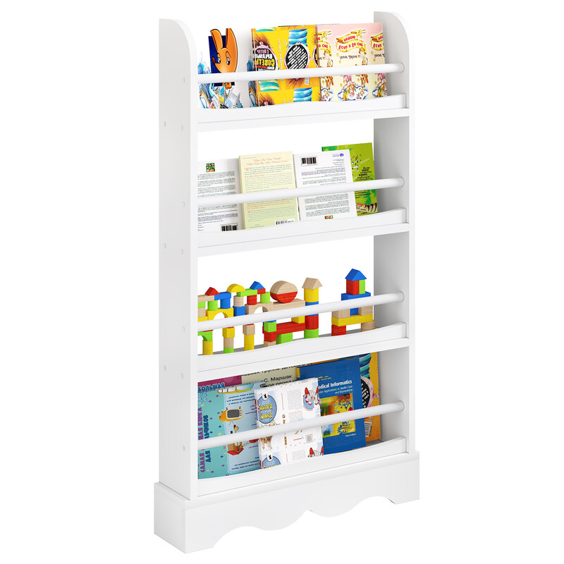 Lestarain Kinderbücherregal, Kinderregal mit 4 Ebenen, Aufbewahrungsregal für Bücher und Spielzeug, Regal für Kinderzimmer Kindergarten, mit Kippschutz, MDF-Holz, 60x12x108,5 cm, Weiß