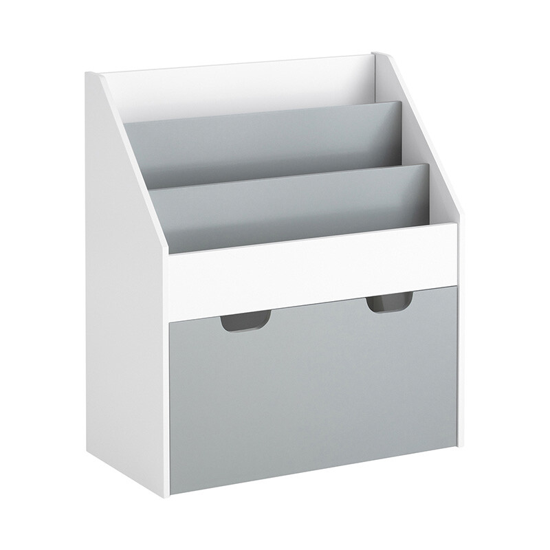 SoBuy Kinder Bücherregal Kinderregal mit 3 Ablagefächern und Einer herausnehmbaren Spielzeugtruhe Aufbewahrungsregal für Kinder Weiß/Grau BHT ca. 62,5x70x30cm