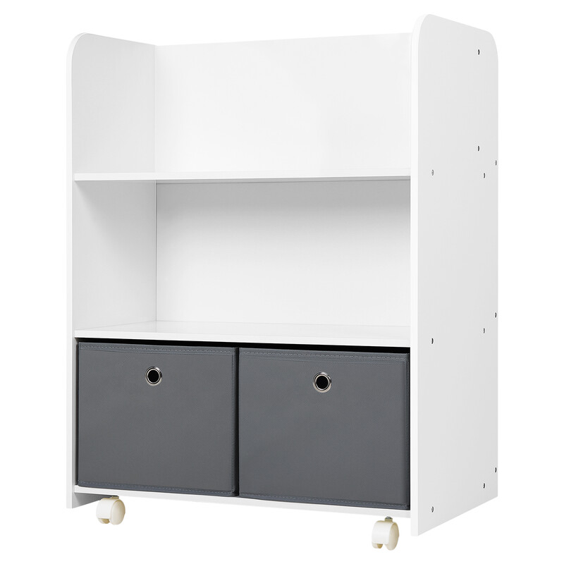 WOLTU Mobiles Kinderregal, 2-in-1 Bücherregal und Spielzeugregal, Kinderaufbewahrung mit Boxen, Beidseitige Aufbewahrung, Mehrzweckregal auf Rollen, Holz, 62.5x82.5x40 cm, Weiß