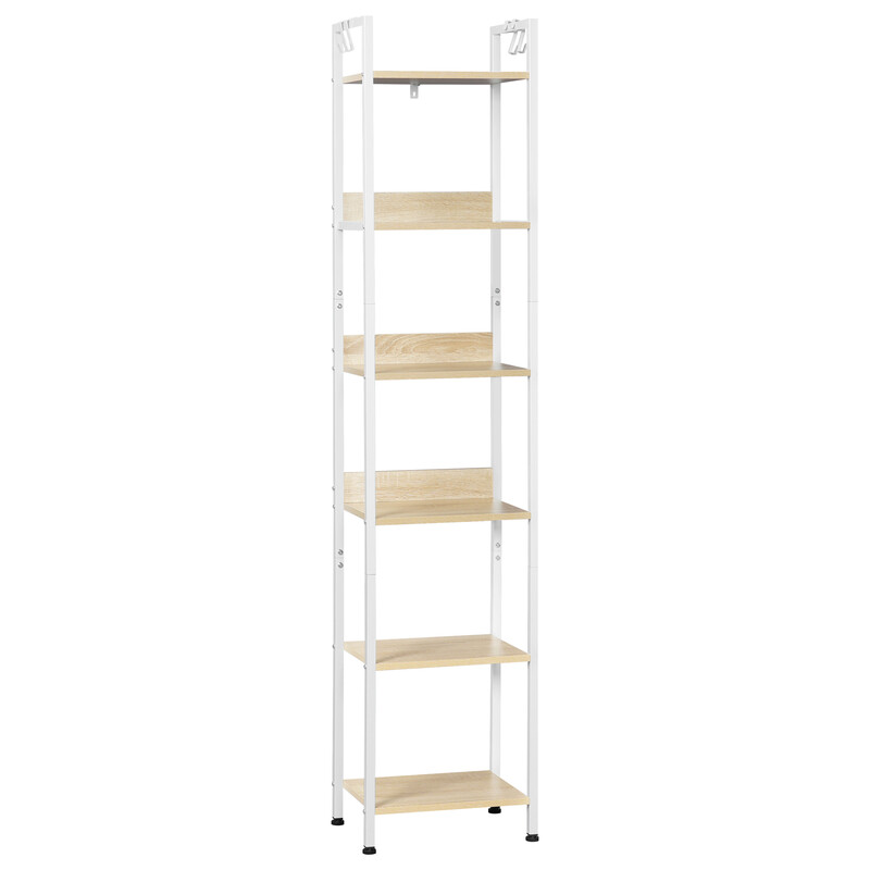 WOLTU Weißes Leiterregal im Industriestil, Aufbewahrungsregal mit Holz und Metall, 4 abnehmbare Haken, 6-stufiges Bücherregal für Wohnzimmer, 40x30x187cm, RGB31whe