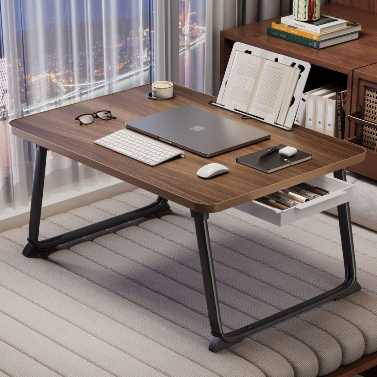 Taca bambusowa na łóżko, biurko na kolana, składane nogi, prostokątny mini stolik do serwowania na podłogę