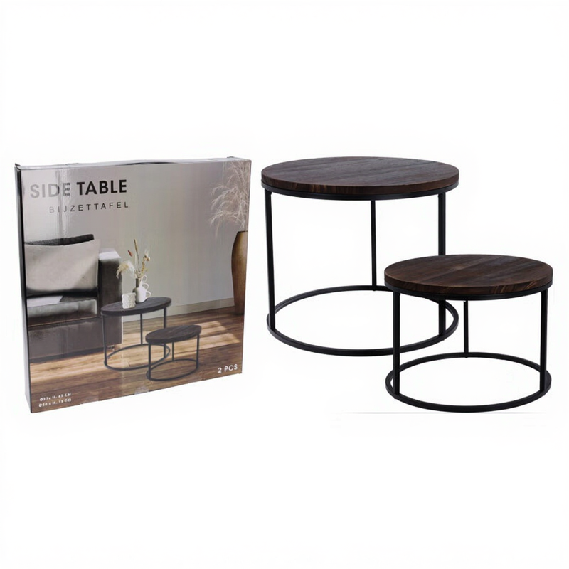HOMCOM Nesting Side Tables Set of 3, C-Shaped Snack Side Tables with Steel Frame for Sofa Couch and Bed, Rustic Brown | Aosom UK
