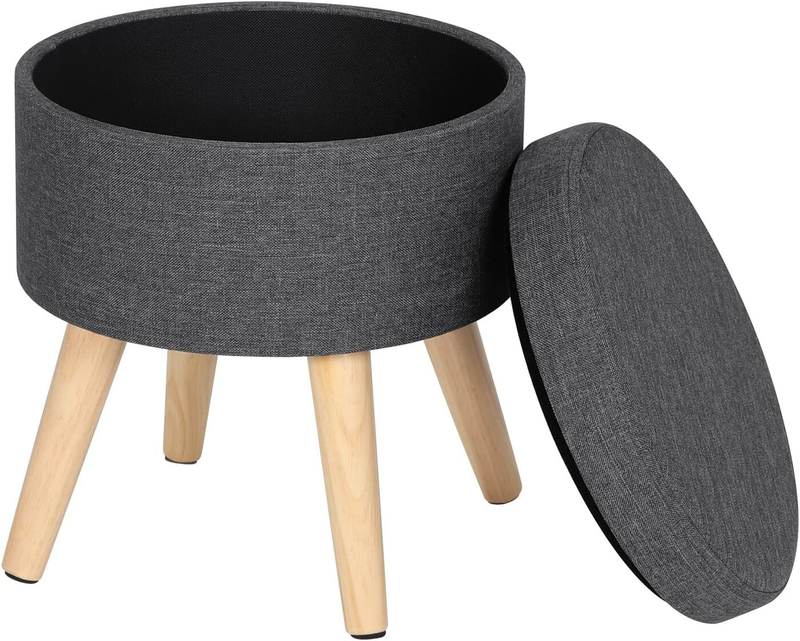 WOLTU Aufbewahrungshocker rund, niedriger Pouf mit Holzbeinen, Fußablage, dunkelgrau
