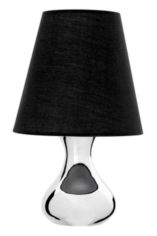 Premier Housewares Nachttischlampe aus Chrommetall mit EU-Stecker, abgewinkelter schwarzer Stoffabdeckung, Akzentbeleuchtung, moderne Nachttischlampe