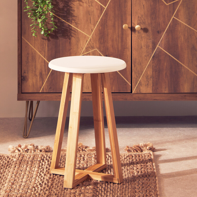 Premier Housewares Rundes Hocker aus weißer und natürlicher Bambus, moderner, robuster Hocker für die Küche, vielseitig