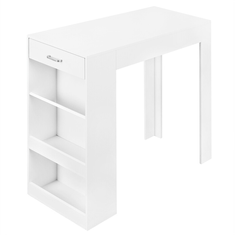 Woltu Hochbar-Tisch, Küchenbar-Tisch, mit 1 Schublade, 1 Weinregal und 2 Ablageböden, für Esszimmer, Kücheninsel und Wohnzimmer, 100x50x100 cm, Weiß