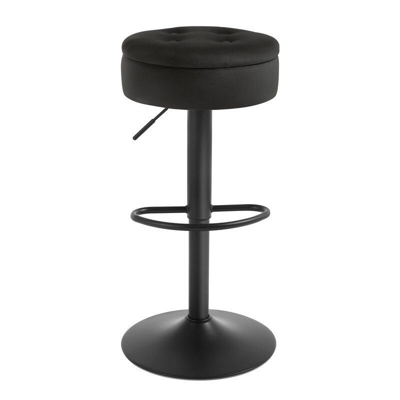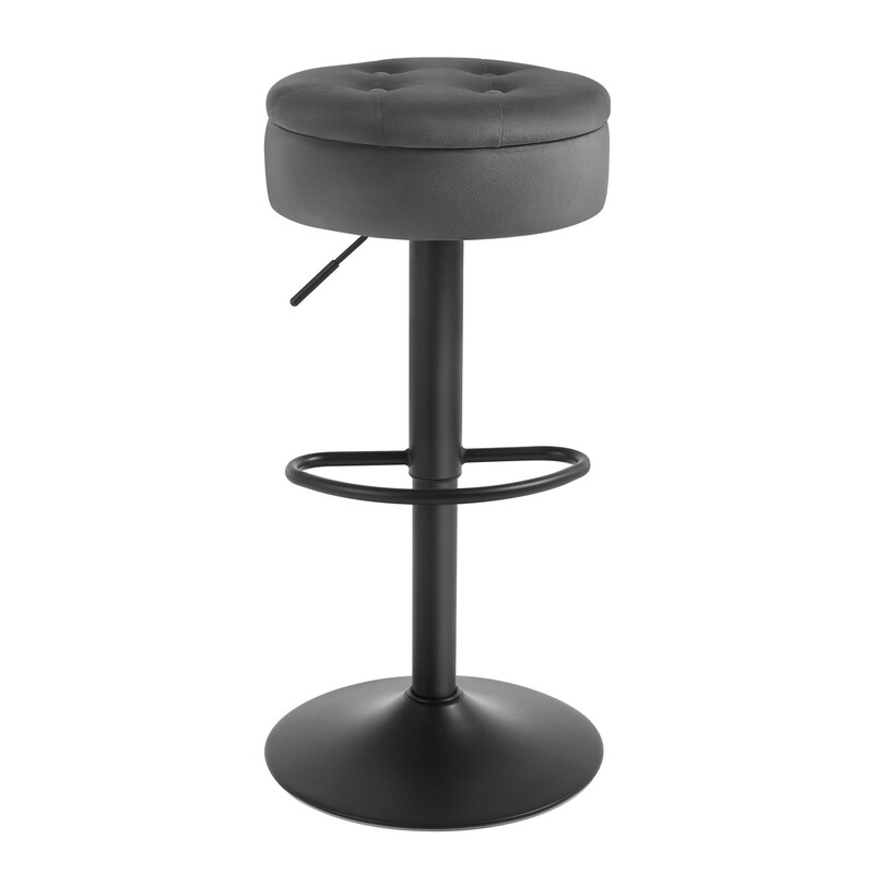 WOLTU Küchenhocker, Hoher Barhocker mit Stauraum, Höhenverstellbar und 360° drehbar, für Küche, Esszimmer, Bartheke, Samt, Metall, Dunkelgrau