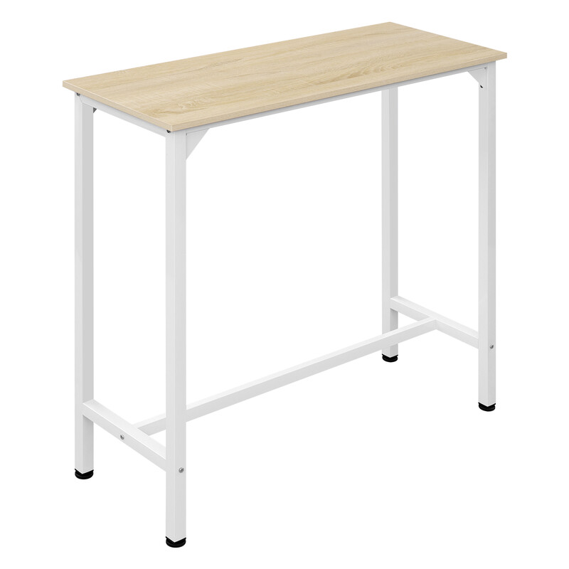 EUGAD Hoher Küchentisch, schmaler Bartisch, für Kücheninsel, Esszimmer, Bar und Café, Metallrahmen, Holzplatte, verstellbare Füße, Industriestil, Hell Eiche + Weiß