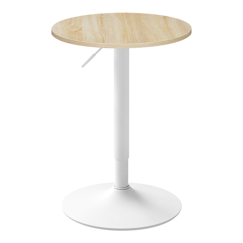 Woltu Drehbare Tresen-Tisch, rund, aus Holz und Metall, verstellbare Höhe 70–91 cm, für Küche und Wohnzimmer, helle Eiche + Weiß