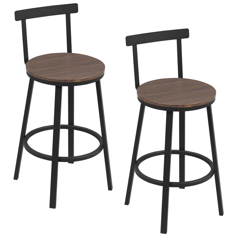 Woltu Küchenhocker-Set mit 2, Fußstütze & Rückenstütze, Dunkle Holzoptik
