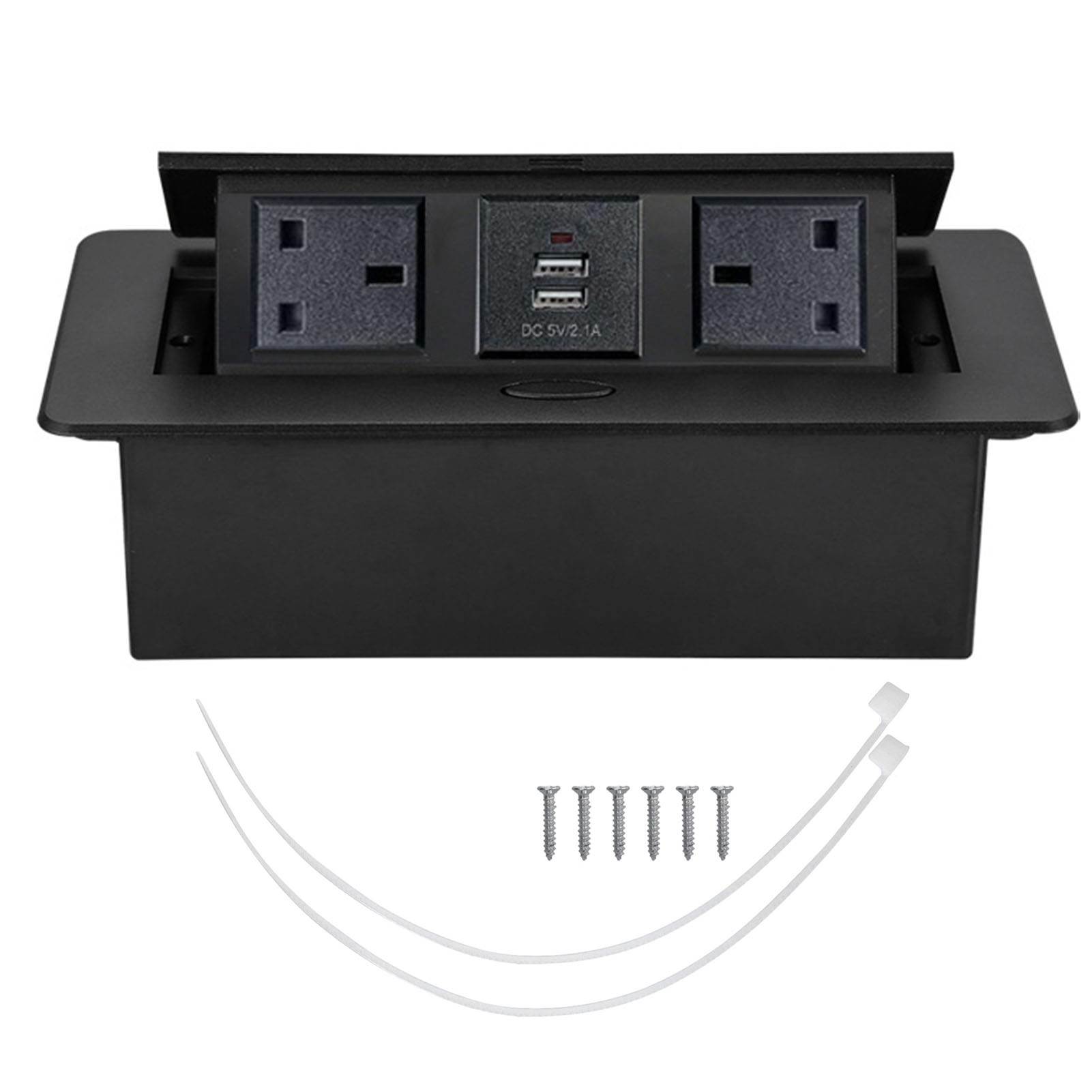 Bordplate Pop Up Stikkontakt 2 X 3-pins 2 X USB-porter Multifunksjonell Bordplate Pop Up Uttak for Hjem Hotell Kontor