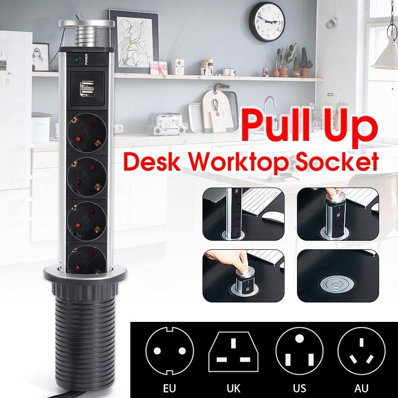 2500W Amerikansk/Britisk/EU/AU Støpsel Pop-Up Elektrisk Stikkontakt 4 Strøm 2 Lade USB Aluminiumshylle LED Skrivebord Arbeidsbenk Utvidelsesbord Konto