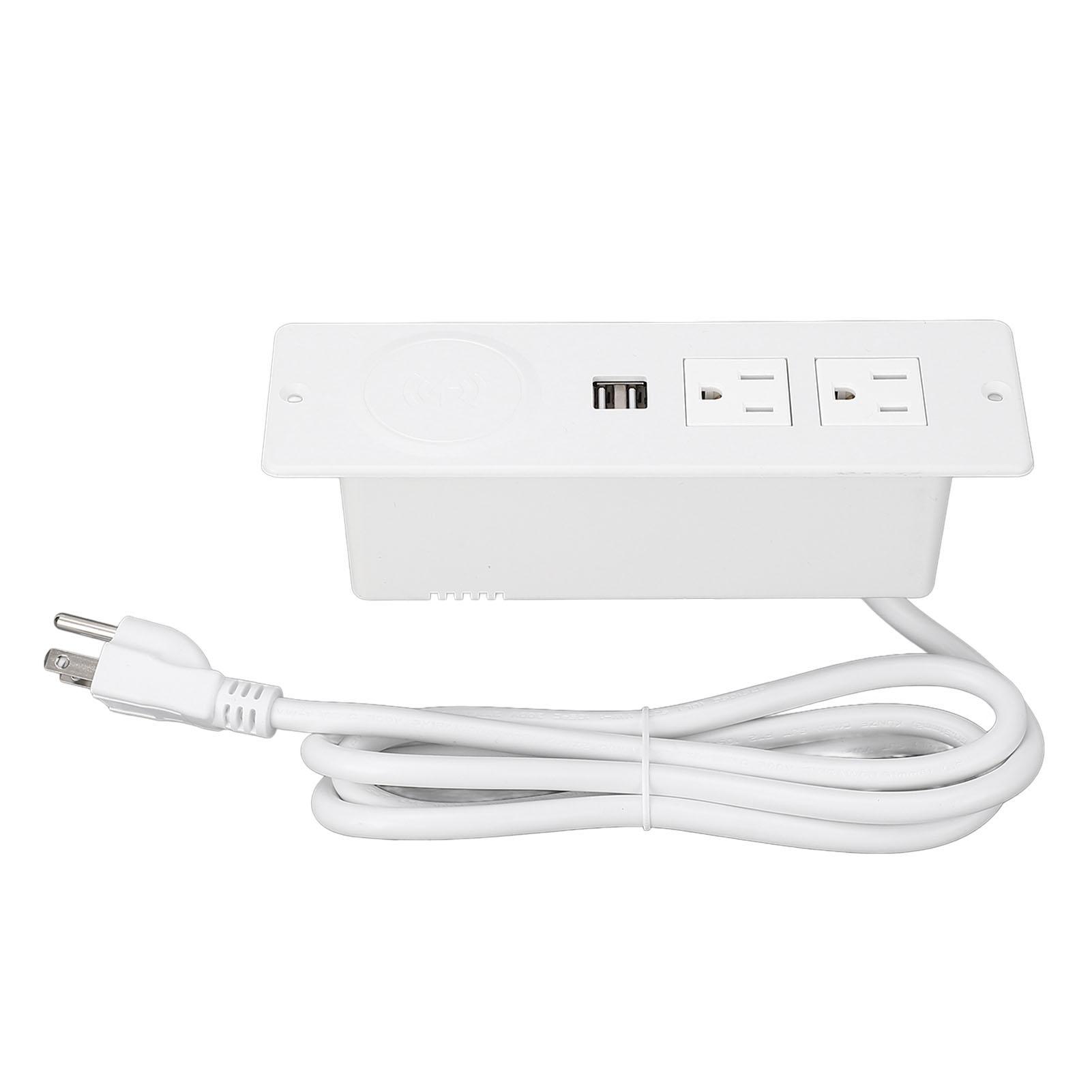 Innfelt Power Strip 5 i 1 Flush Mount Skrivebord Multipel strømuttak med 15W trådløs lading 1,5m Svart