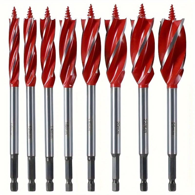 8 szt. Zestaw wierteł do drewna - Stal wysokowęglowa, 4-ostrzowe wiertła tnące, 10-25mm samogwintujące trzpienie sześciokątne, wiertła precyzyjne do g