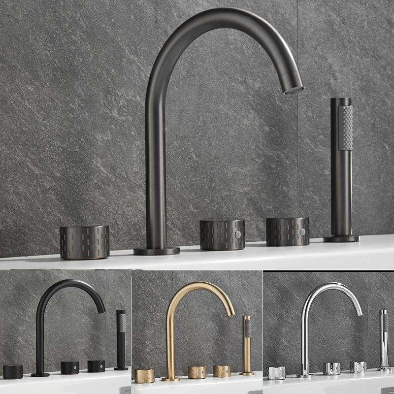 Grå Luksus Messing Dekkmontert 5-Hulls Baderom Badekar Roterende Blandebatteri Badekar Servant Vannkran Med Dusj 3 Håndtak Svart