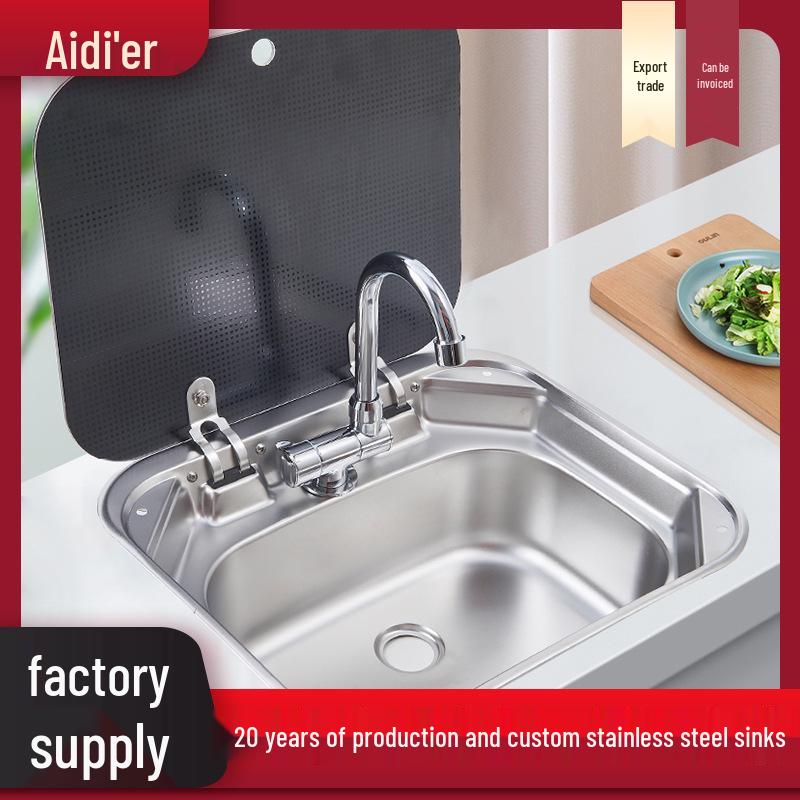 Fyrkantig uppfällbar RV-diskbänksblandare i rostfritt stål med lock - Roterbar enkelho för grönsaker