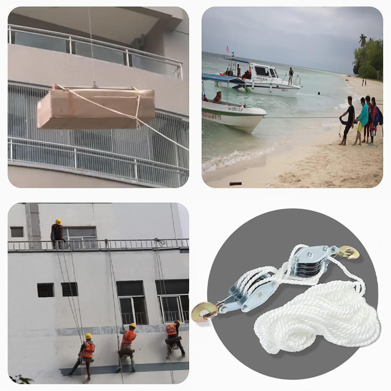 Block och talja Rephjul Hiss Lyftkraft Multifunktionellt Kraftigt Taljesystem Metallhjul med 1100/2200Lbs vit